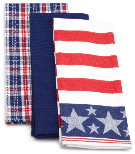 DII Oh My, Set of 3 oh my stars Dishtowels. Each set includes 1 oh my stars jacquard, 1 nautical blue waffle and 1 americana plaid. This set makes a great hostess gift, or can add more color to your kitchen Coordinates with all dii oh my stars Products.